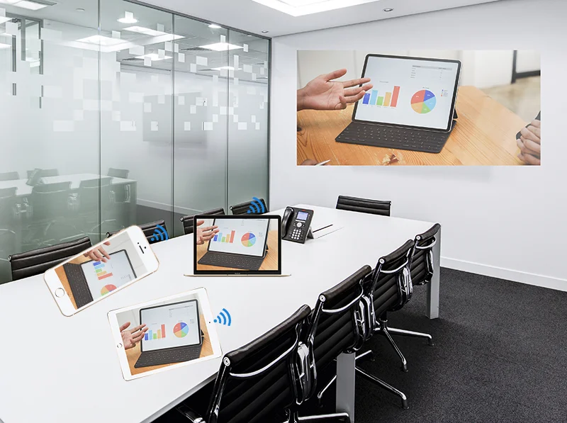 Wireless projection, it supports Mobile Phone, iPad and PC.